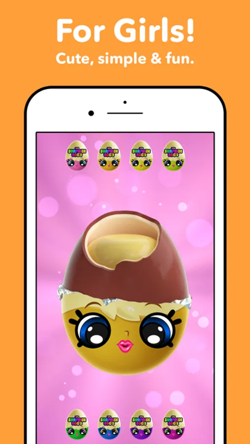 Surprise Eggs For Girls: Open surprise eggs containing cute toys. The surprise eggs are aimed at a girl audience, with ultra cute kawaii chibi style character toys. The app is designed for girls ages 1-8!