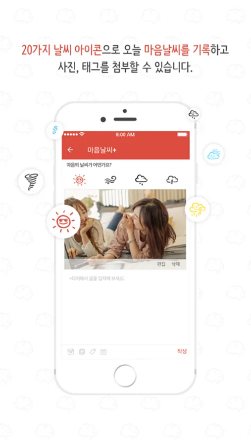 네 가지 날씨 아이콘을 다섯 개의 단계로 선택하여 매순간의 감정을 표현해보세요.