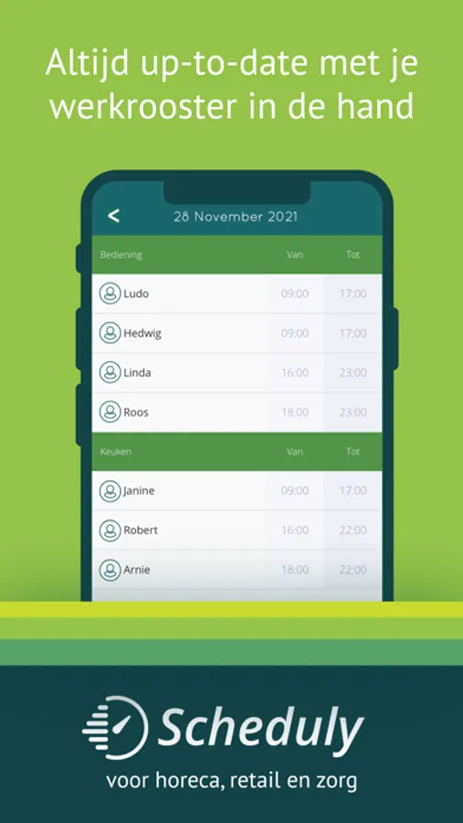 Het platform voor werkgevers én werknemers waarin alles voor een goede personeelsplanning op een snelle en heldere manier samenkomt. Het bijhouden van verzoeken, last-minute wijzigingen en urenlijsten nemen we uit handen, de controle blijft bij jou.