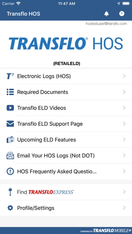 This app requires a Transflo T7 electronic logging device, registration of the device and a monthly service plan as well as acceptance of the Transflo Mobile+ End User License Agreement provided by Pegasus TransTech, LLC and the Geotab End User Agreement provided by Geotab, Inc. The end user license agreements can be found at: https://svc.transflomobile.com/eula/tfmpeula.html and https://my.geotab.com/eula.html.