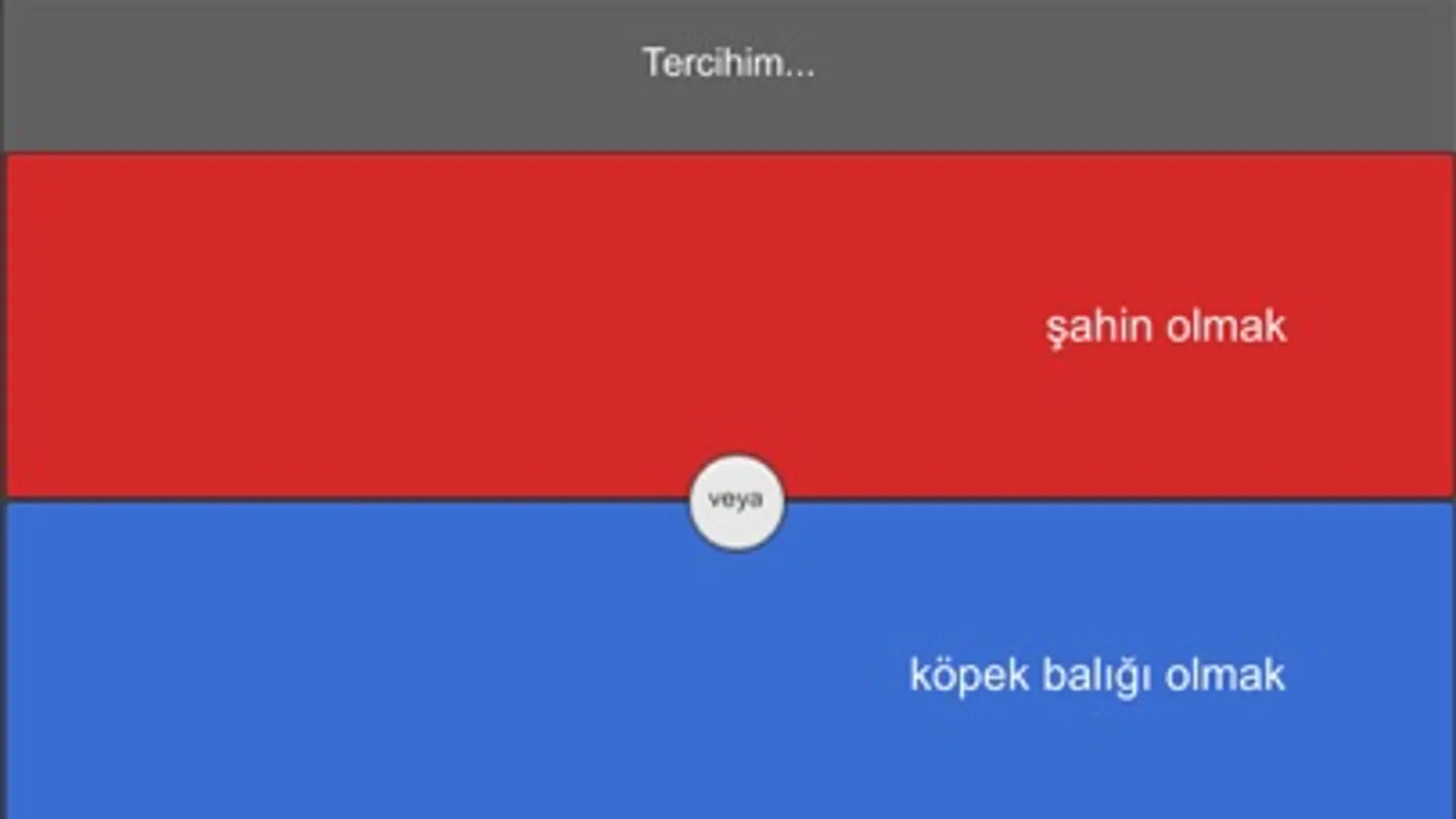 Tüm dünya da çok sevilen tercih yarışması, hem eğlendiriyor hem de diğer insanların garip sorulara verdiği cevapları size istatistiksel olarak gösteriyor. Tüm dünya da Would you rather? olarak bilinen oyunu sizler için Türkçe olarak yayınlıyoruz.