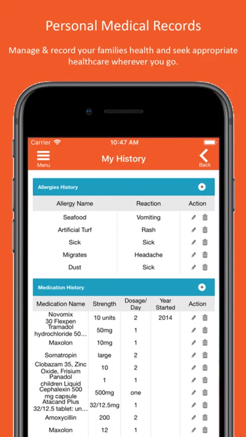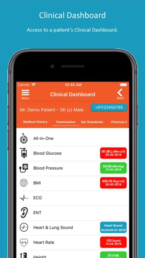 All results, prescriptions, notes and readings are stored in the app to be viewed by staff and treating medical professionals