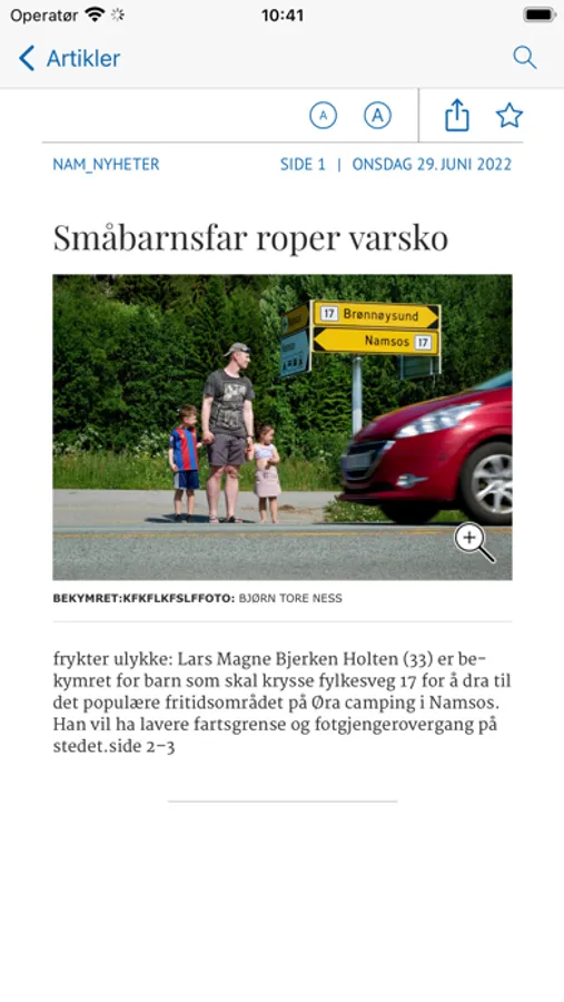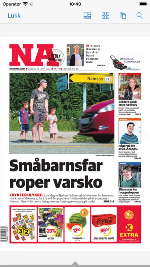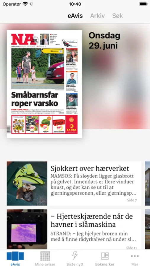 Dette er en elektronisk versjon av papiravisa som blir gjort tilgjengelig i det avisa blir sendt til trykkeriet. For å lese nyheter som publiseres fortløpende må du laste ned appen som kun har en rød NA logo.