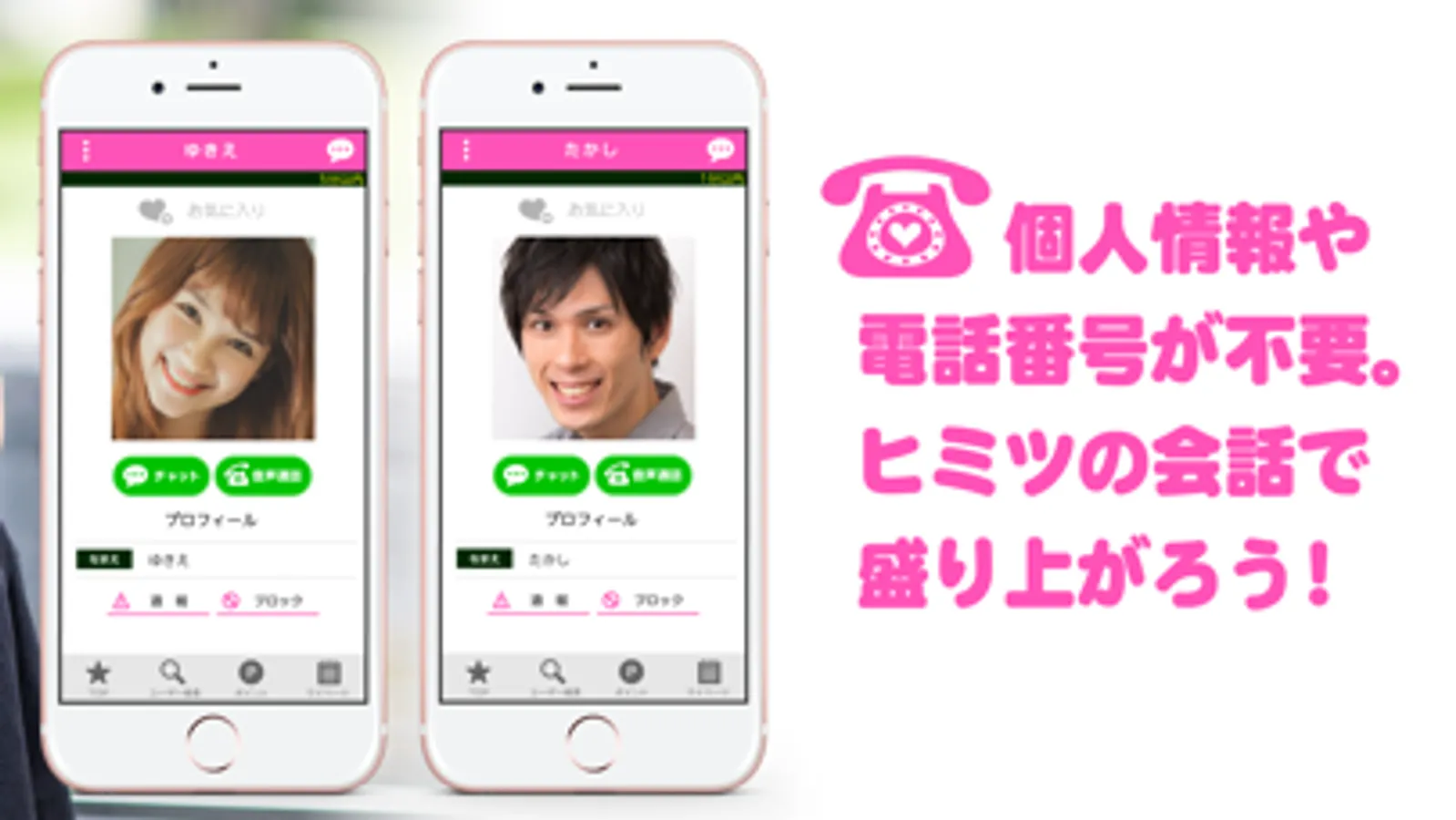 チャットだけではなく、音声通話で直接相手の声が聞けるので安心安全にご利用いただけるのが特徴です。