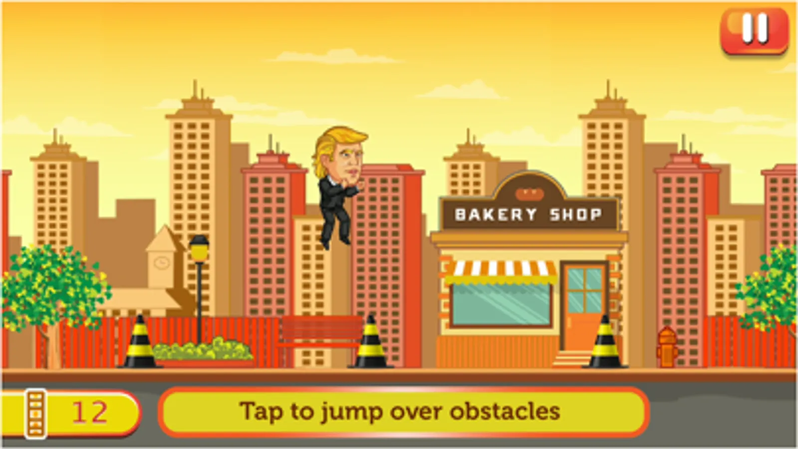 Mr. Donald Trump is in a rush. Yet, you have to be cautious. There will be countless obstacles along the path like parking cones, fragile boxes, & deadly traps! You have to cross them all to collect the scattered coins and earn more points. One mistake and your game is over.