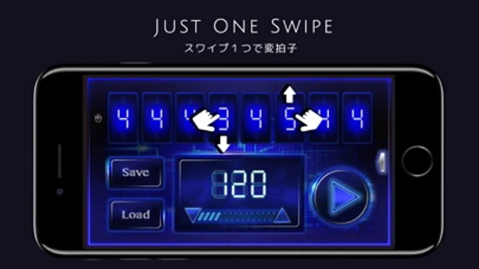 ・The time signature can be easily changed between 0 and 8 with a swipe.