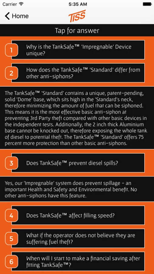 The TISS App is a one stop shop and dynamic information portal for our award wining TankSafe™ fuel security and safety solutions. The App has been specifically developed to enable you to access key information instantly for both yours and your customer's convenience and benefit.