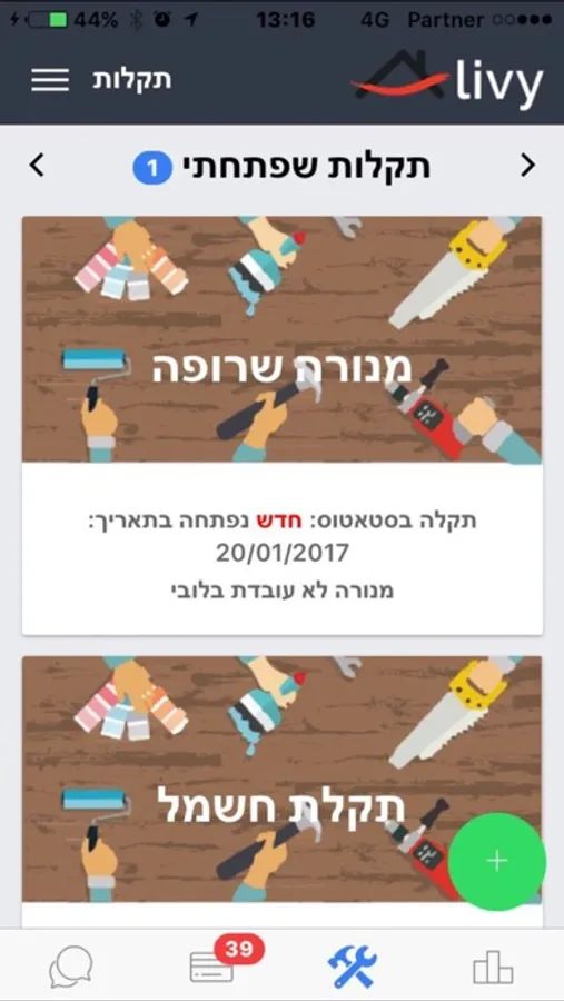ניהול ודיווח תקלות - כל דייירי הבניין יוכלו לדווח על תקלות ולקבל עדכון על טיפולן ועלות הטיפול.
