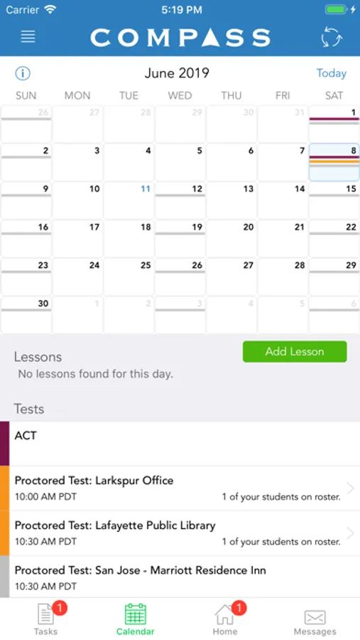 - View your Compass Calendar, including lessons, practice tests, and test dates