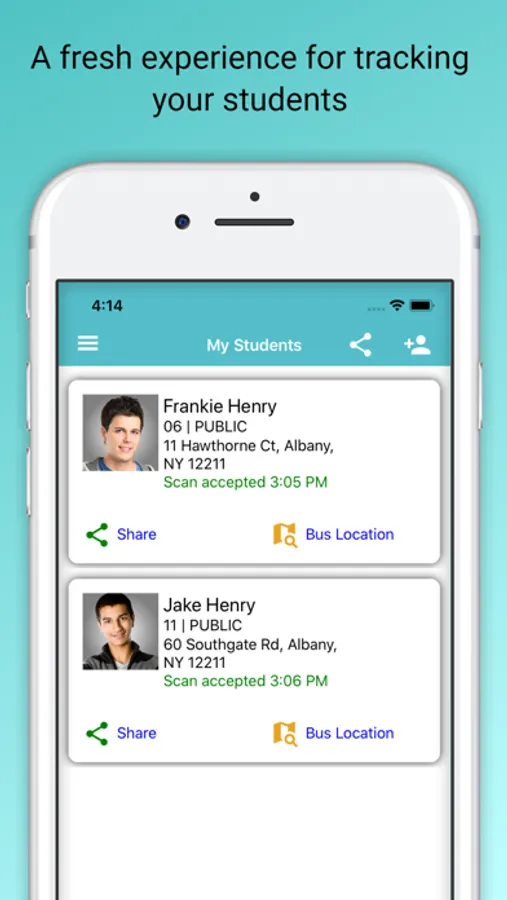 The Traversa Ride 360 mobile app provides secure access to student routing information, student scans as well as current bus location and planned bus paths*.