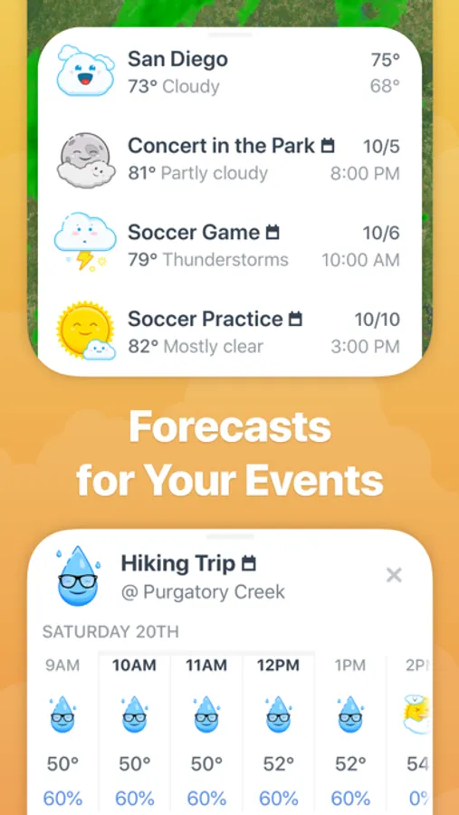 • Event Forecasts let you keep tabs on the weather for upcoming calendar events