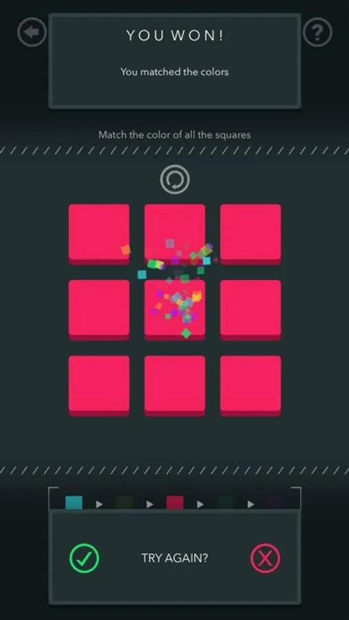 Chill and enjoy. No time or move limits. Your goal is to match the color of all the squares.