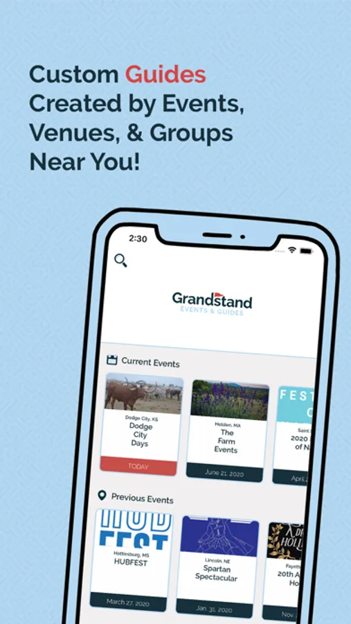 Find an event or year-round group near you and view schedules, maps, vendors, food, and more. Each event listed on Grandstand - Events & Guides has been setup directly by the event or group and contains all of the official information for that event.