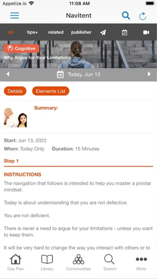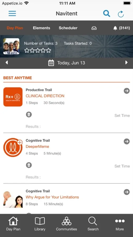 A lite, action-focused extension of the Navitent Web App, a universal utility for users to create, deliver, track and collaborate on any behavioral Trail (Active, Nutritive, Cognitive, and Instructive tasks) and combine them into processes and workflows in Guides (Sessions, Checklists, Posts, and Indexes), organizational Maps (Courses and Tiered Courses) and objective-tailored Communities (Campfires, Campsites, and Campgrounds).