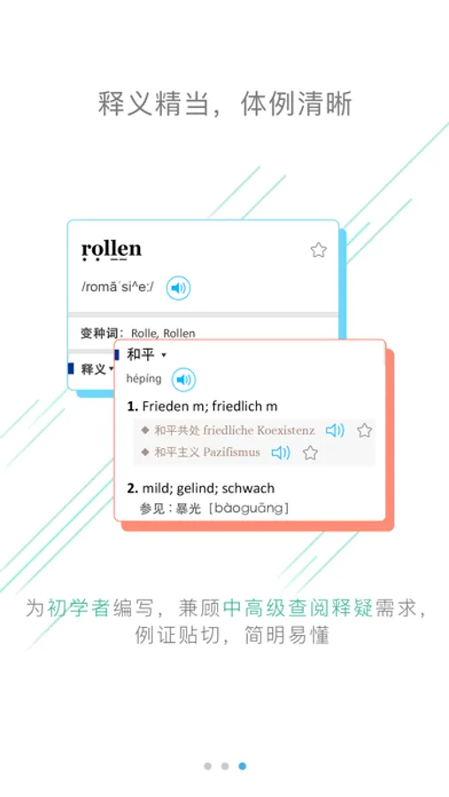 收词新颖、时代感强、释义准确、双向查阅,适合初中级学习者使用,也可供专业人员日常查阅的理想德汉工具书。《外研社·精编德汉汉德词典》2017年3月第1版手机版同步发行。
