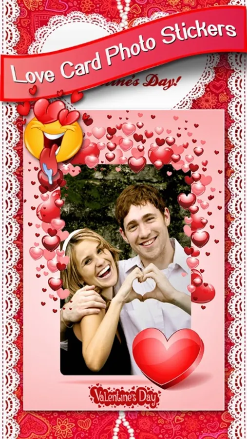 With Valentine love photo stickers you can take a regular photo and apply over stickers to create unique looking picture in seconds.