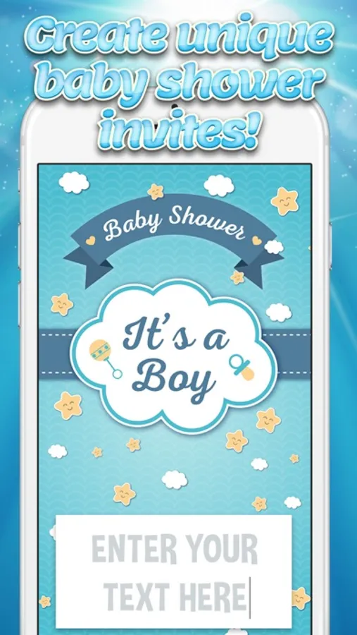 It's a Boy! Prepare to celebrate and send custom invitation cards for your baby shower party! Shower your new little bundle of joy with tons of love even before he is born! You are getting a son, so go on, brag about it – you have all the rights! Add some cute baby shower wordings and send invites to your dearest people. They are eagerly awaiting to meet your cute little son, so give them a chance to celebrate with you! Spread joy among your friends and invite them for an unforgettable baby shower party! Express your creativity: choose template, original design and lovely text fonts to create unique baby shower invites for your friends and family. Download the best It's a Boy! Baby Shower Invitations app, have fun and welcome your little angel into the world!