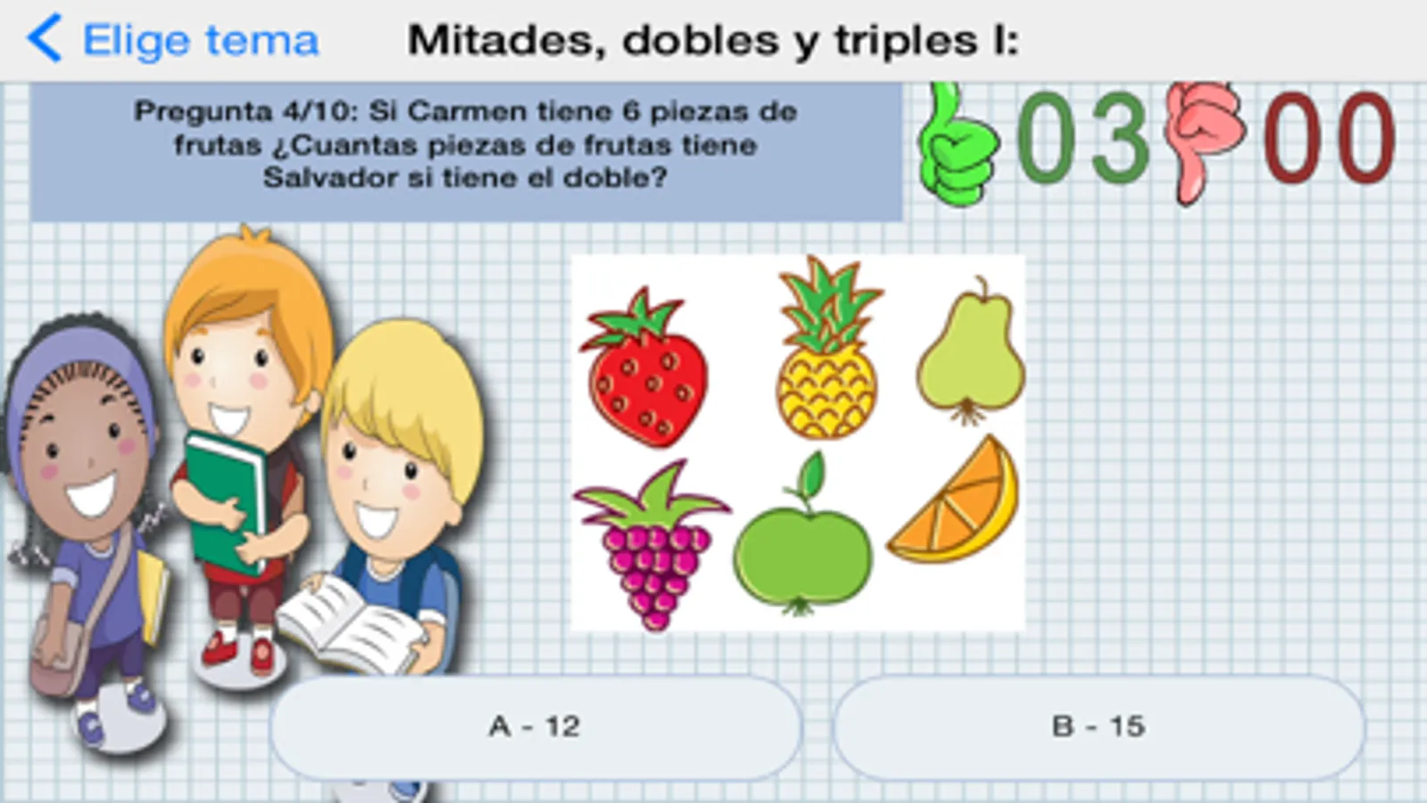 Repasa el temario de MATEMÁTICAS para niños de 7 años con nuestra divertida aplicación, completando el mapa de temas hasta llegar a realizar el examen final.