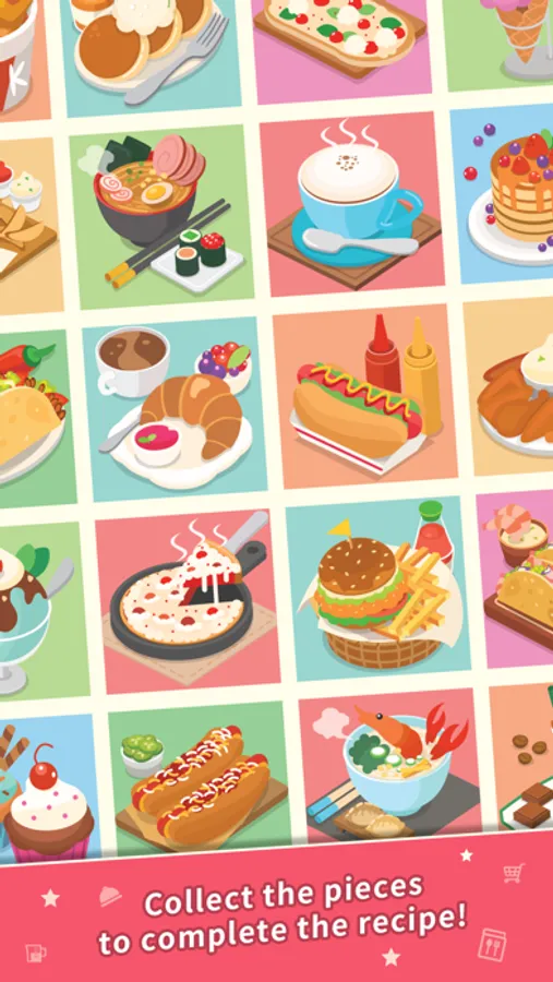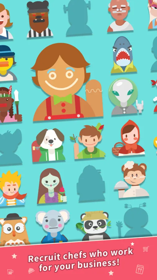 Expand your restaurants through steady level ups. With automatic profit collection and profit increase, the appearances of your restaurants will grow more glamorous!