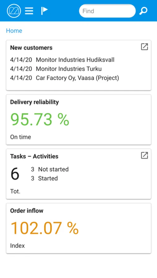 Som standard i affärssystemet MONITOR G5 finns det en mobilapplikation där du som användare i systemet alltid har din information tillgänglig, var du än befinner dig. Säljare kan se information om kunder och offerter direkt i mobilen eller surfplattan och lagerarbetare kan utföra inventeringar eller göra in- och utleveranser. Attest av fakturor eller närvaro- och arbetsstämpling är andra uppgifter du lätt hanterar i appen.