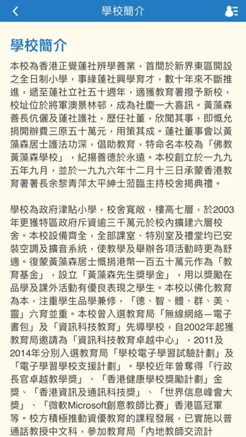 本程式提供一站式即時通訊平台,令家長隨時了解子女在學校的情況,包括通告,功課等資訊。