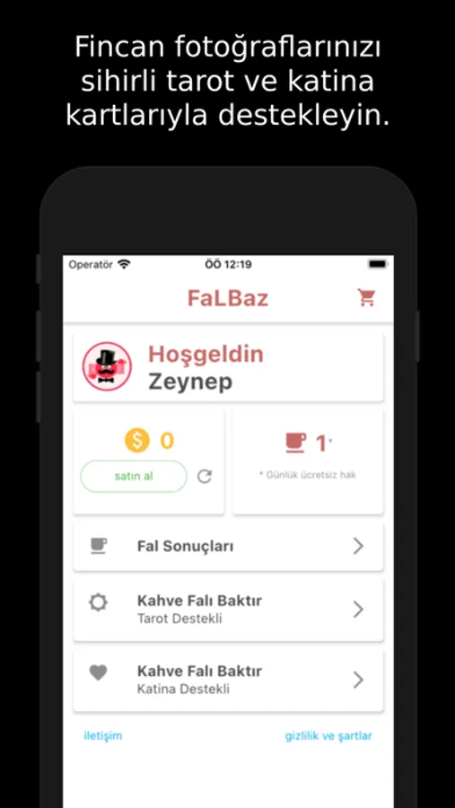- Standart kahve falı uygulamalarını bir adım ileriye taşıdık. FaLBaz ile fincanınızı tarot ya da katina destelerinden seçeceğiniz kartlarla destekleyin.