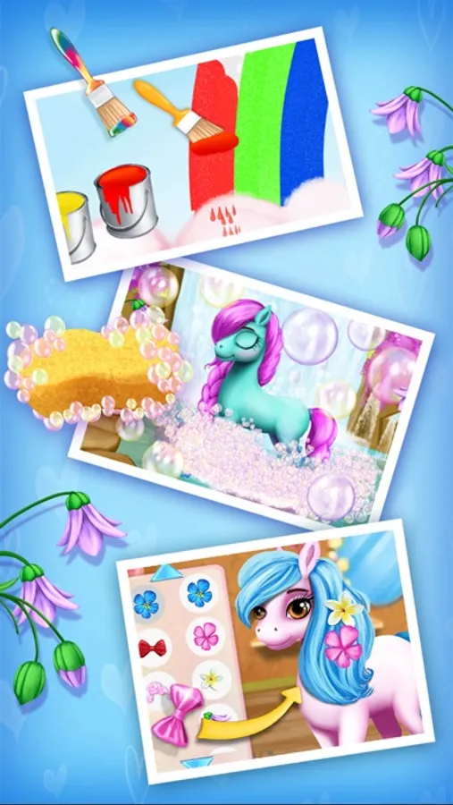 · Run a pony hair salon! Mix and apply hair mask to little Bubbles, shampoo and wash her hair, dye with your favorite colors, decorate with flowers and create the loveliest hairstyle!