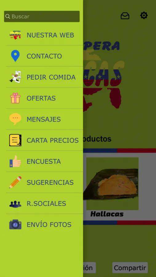 Arepas, Empanadas, Cachapas, Hallacas, Tequeños, Guasacaca, Pabellon Criollo, Chicha y otros productos más.
