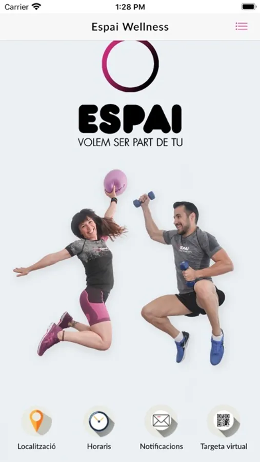 Accede a los datos de tu centro deportivo Espai Wellness. Desde aquí puedes darte de alta en el centro y consultar los horarios de las clases, acceder a tus datos personales y descargarte entrenamientos personalizados con videotutoriales.