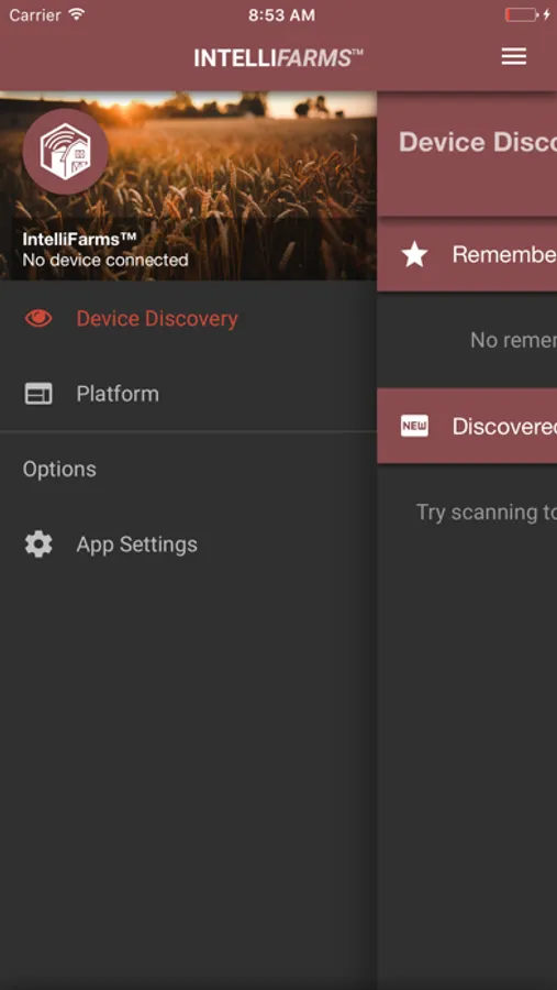 Allows users to connect via bluetooth to select IntelliFarms hardware.