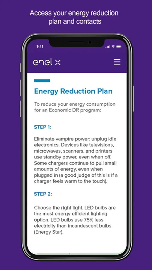 Access Enel X’s mobile demand response software with this application for iOS! Get notified about demand response events, view event performance, and monitor energy usage trends, all in a secure, intuitive, mobile-optimized application.