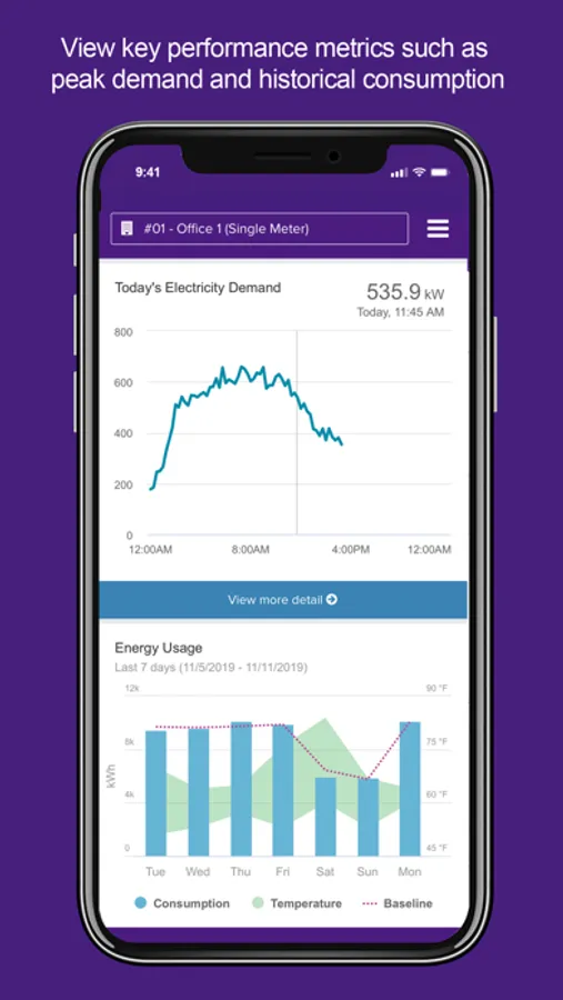 View site-by-site energy information to help your organization make better decisions and deliver positive business outcomes. Understand how much energy your sites are consuming by viewing near real-time energy consumption trends.