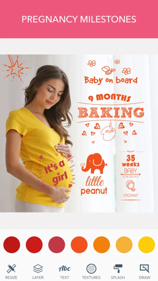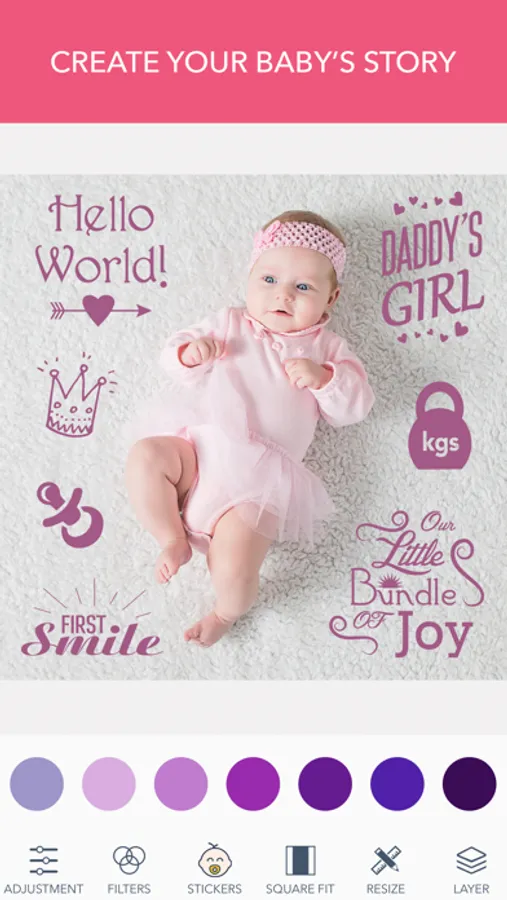 • Stickers – milestone stickers help mark your journey by week, month, weight, length, and other developmental benchmarks. A large number of cutie & funny artworks help you tell your story more vividly.
