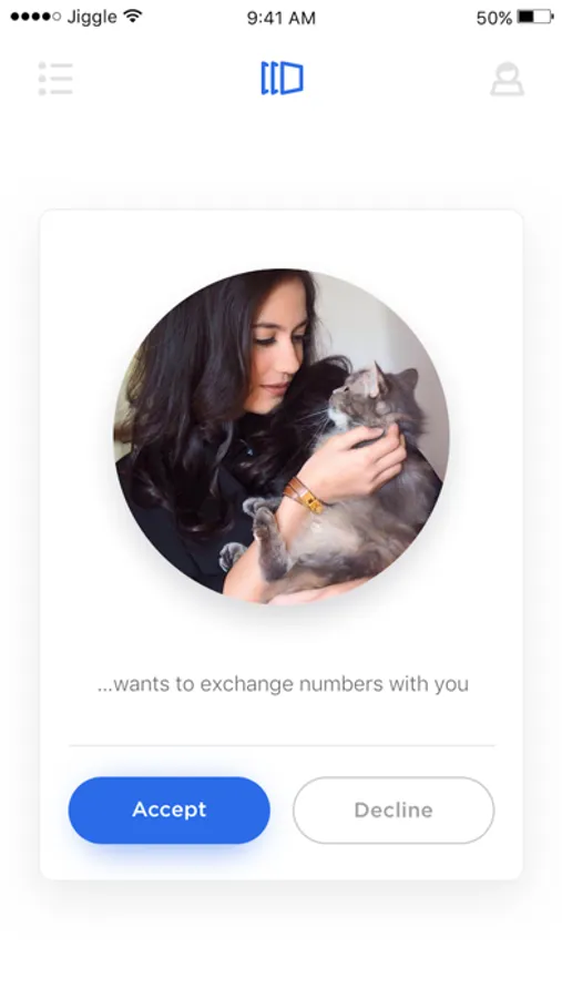 If both of you shake your phones about the same time, Jiggle prompts you to exchange numbers, and if you 'Accept', boom, Bob's your uncle! Go ahead, just Jiggle!