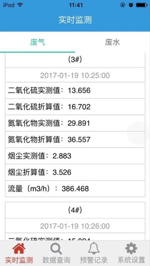 各排放口历史分钟数据、小时数据、日数据进行查询;对污染源的超标情况进行实时预警。