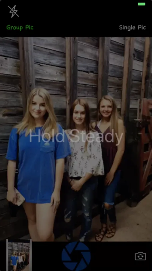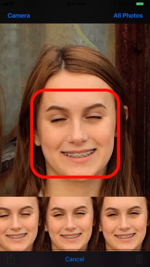 This app allows you to take a photo, and then select a face (or any part of the photo) that needs changing. Select from the alternative options and you now have one photo that everyone can agree on.