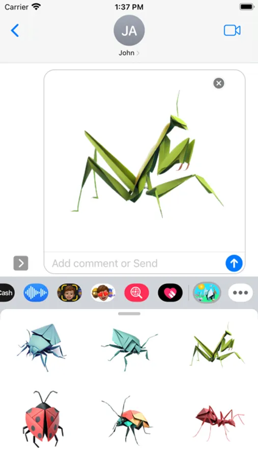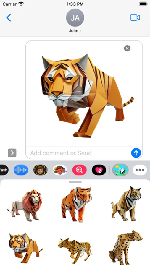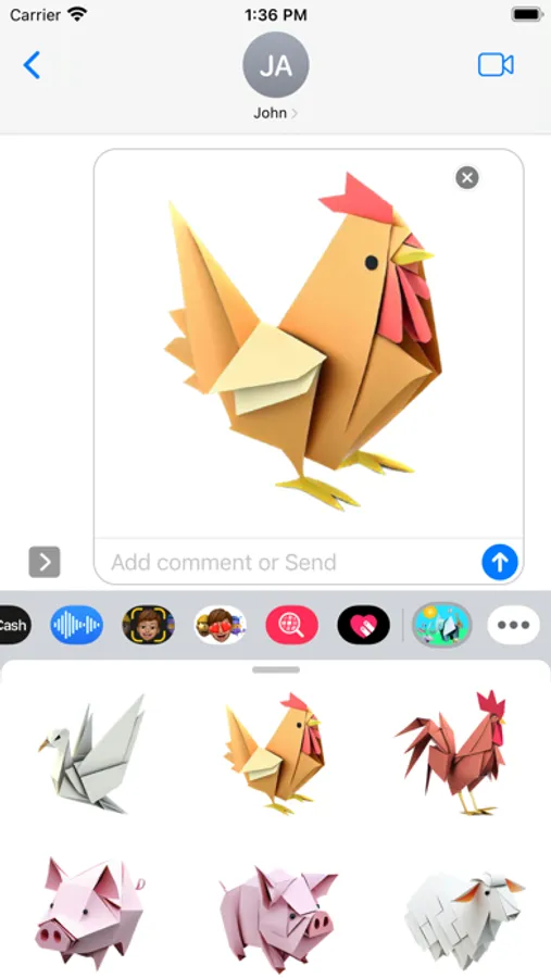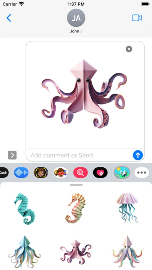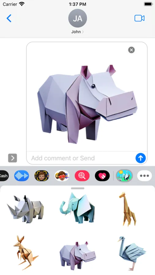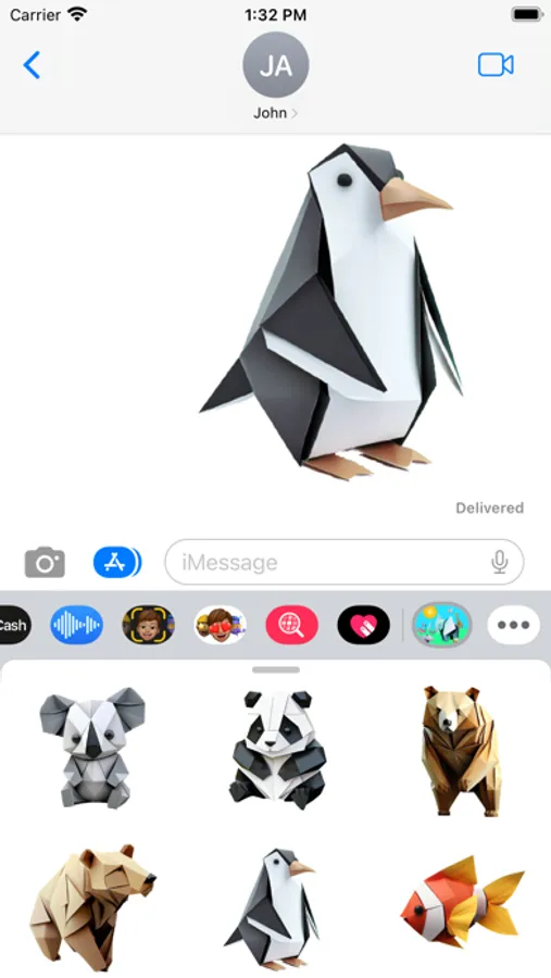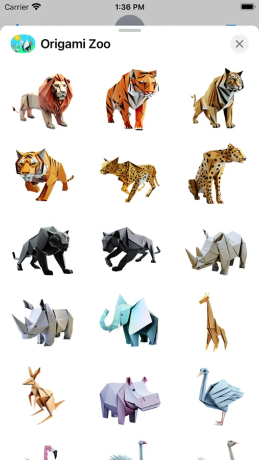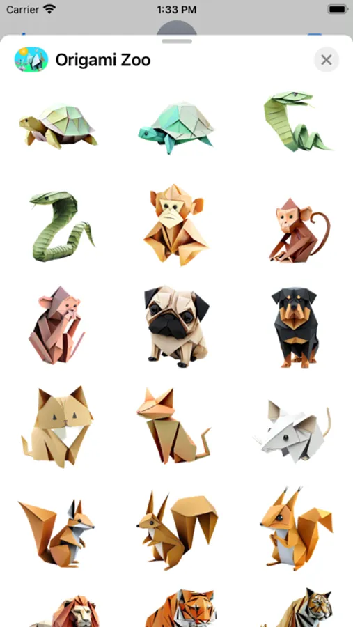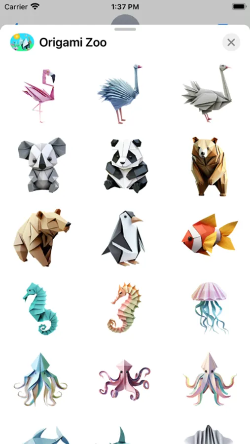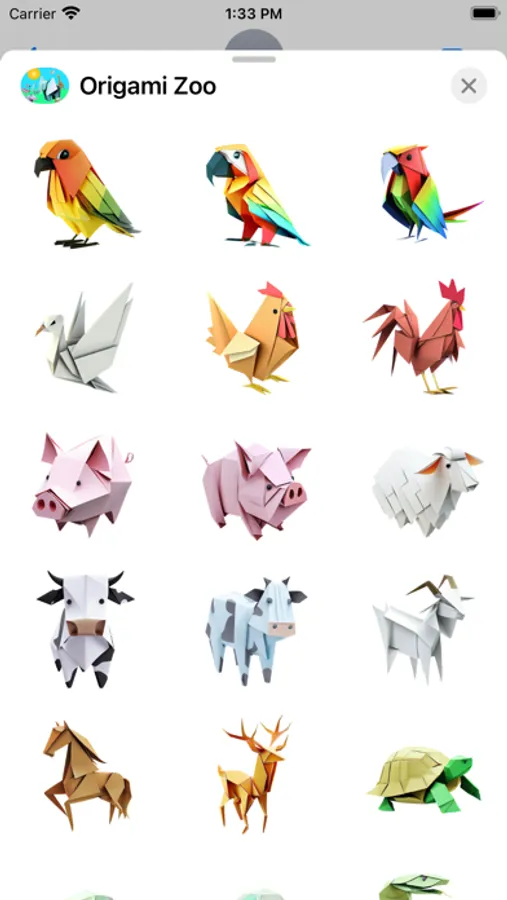 A breathtaking fun collection of carefully folded origami and paper craft animals. Open iMessage to press and hold one of these unique stickers. When they peel off place them anywhere in a conversation!