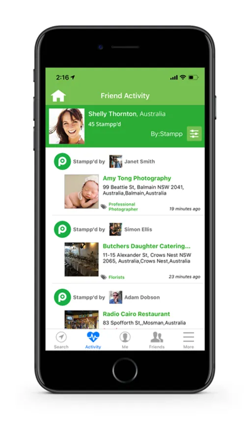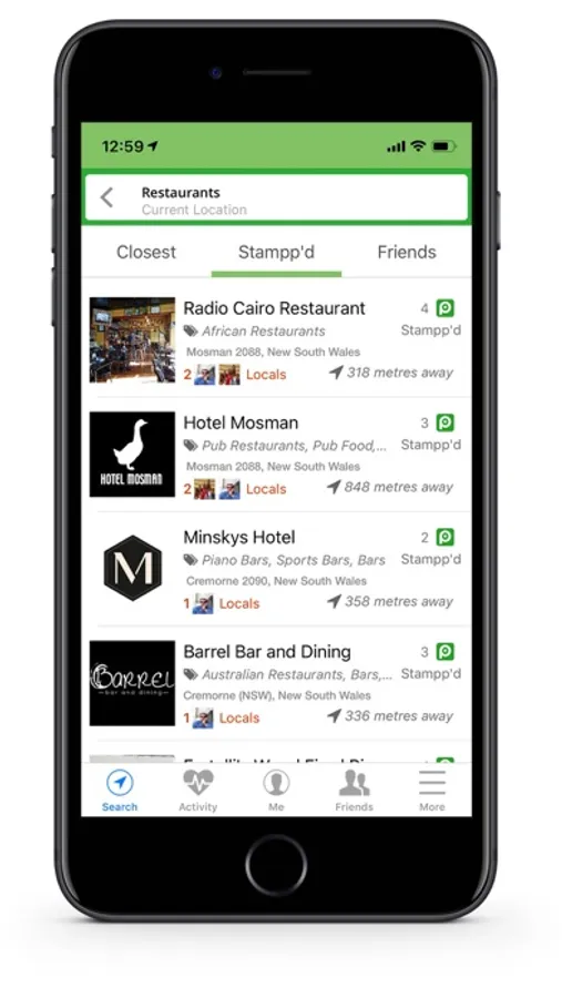 • Filter search results by closest to you, most Stampp’d businesses by everyone on the platform or most popular by locals in the area, or the businesses your friends use and why?