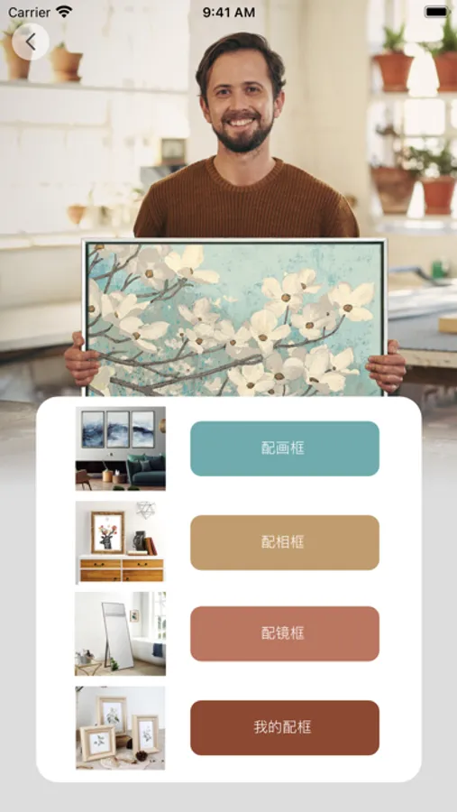 -APP中为您挑选了各类风格的画面,您也可选则手机中的图片来配框