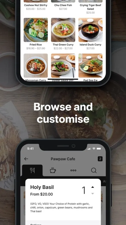 Explore the menus. Personalise your favourite items or discover new ones to try.