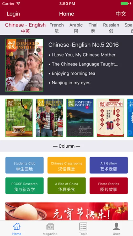 Confucius Institute is a multilingual journal series sponsored by Confucius Institute Headquarters (Hanban).