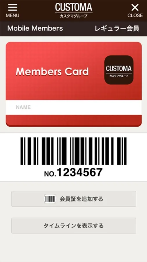 「会員番号バーコード」の表示機能は、店頭で提示することで、スムーズな会計が可能です。