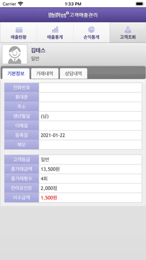고객 및 판매관리 업무의 효율적이고 체계적인 관리를 위하여 상판매, 재고관리, 고객정보관리, 상담관리, 포인트관리, 자금관리, 매출통계분석 등의 기능을 제공하는 프로그램입니다.