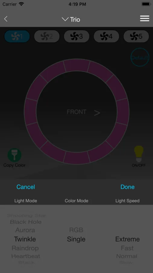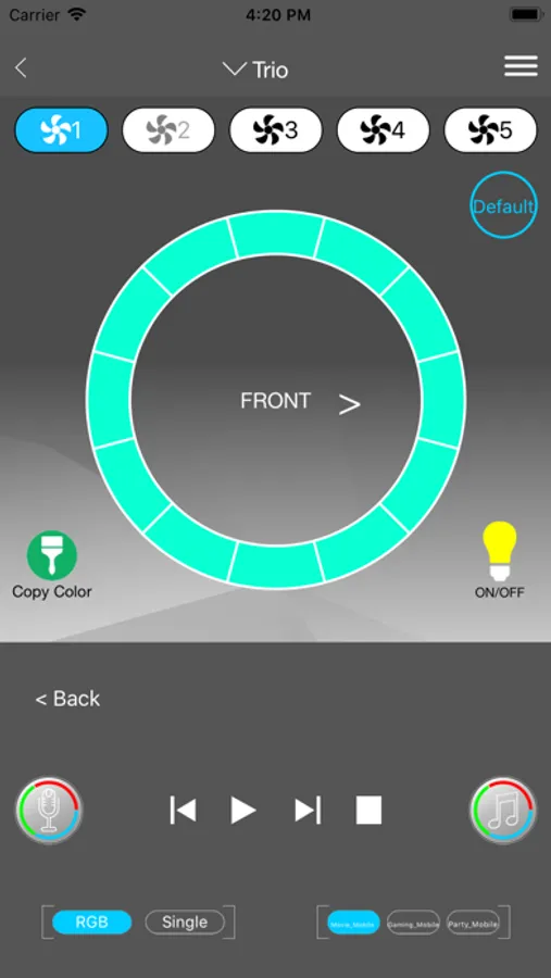 ‧The“Color Palette”enables users to freely pick a color for the fans. Alternatively, users can choose“RGB Spectrum”to switch to a 16.8 millions colors.