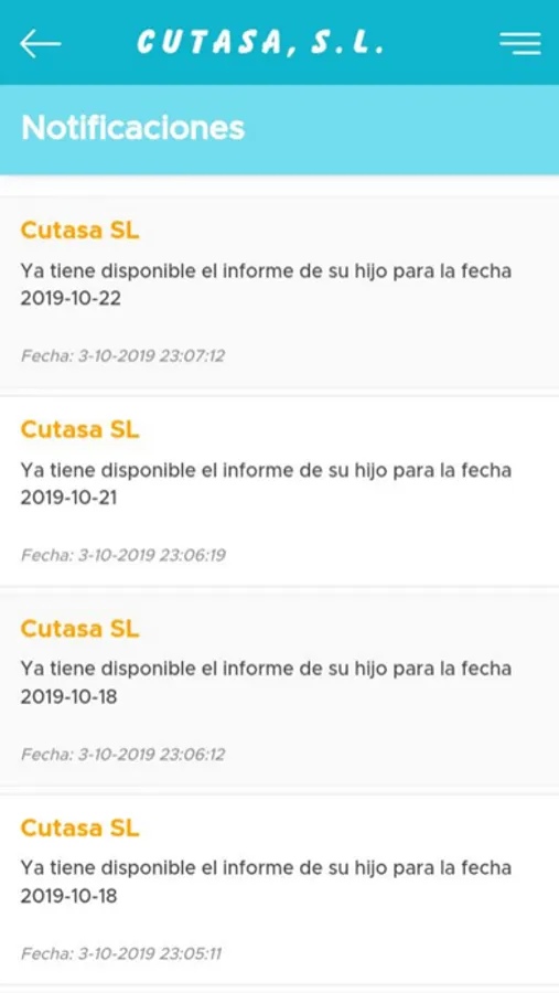 Cutasa S. L.., Servicios de Colectividades Comedores ha desarrollado una aplicación para todos los padres y gestionado por los coordinadores de los colegios, con el objetivo de establecer una gestión de información diaria sobre las Notificaciones en el Comedor y comportamiento de su hijo, en las actividades de ocio y tiempo libre en el colegio.
