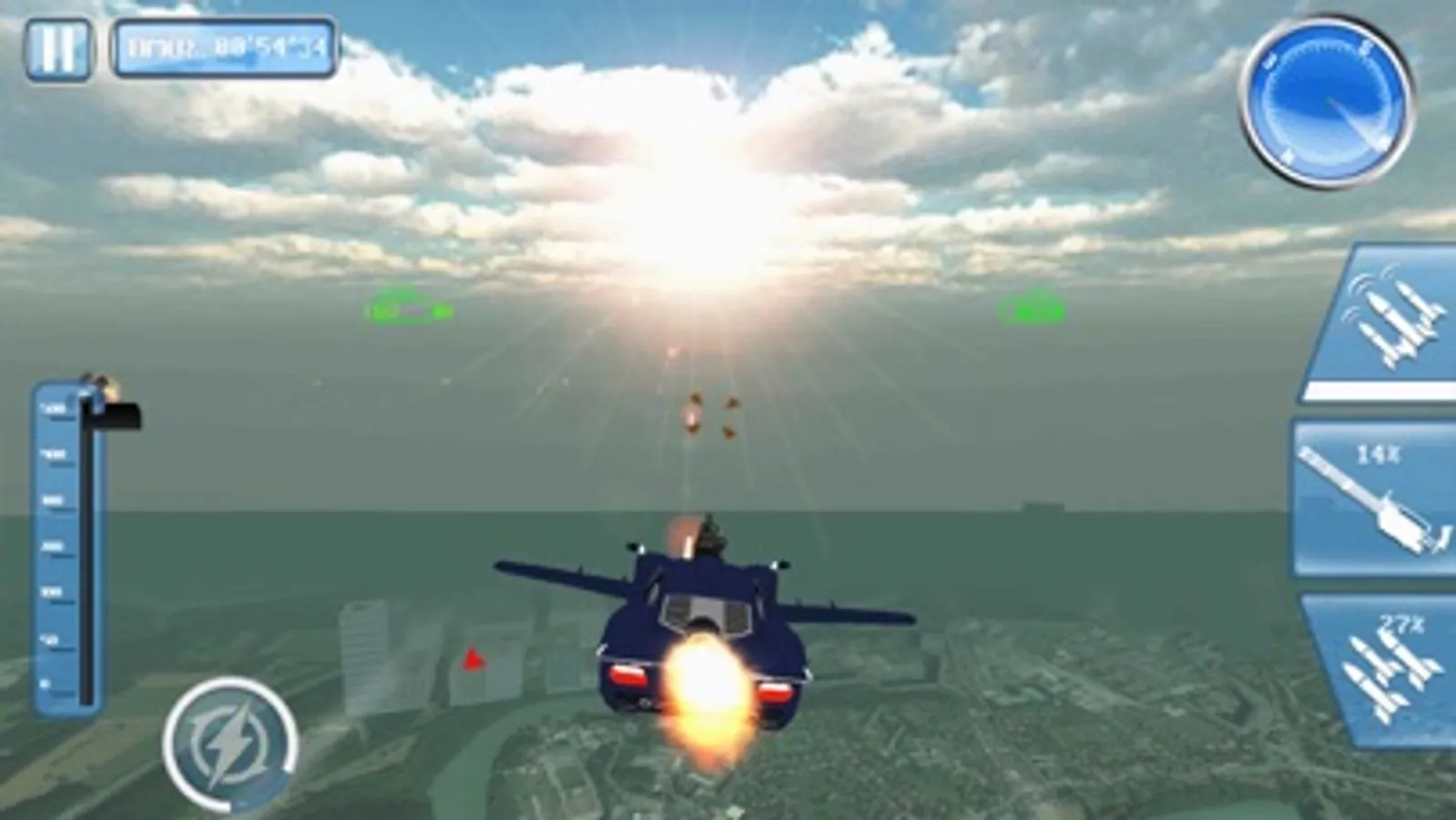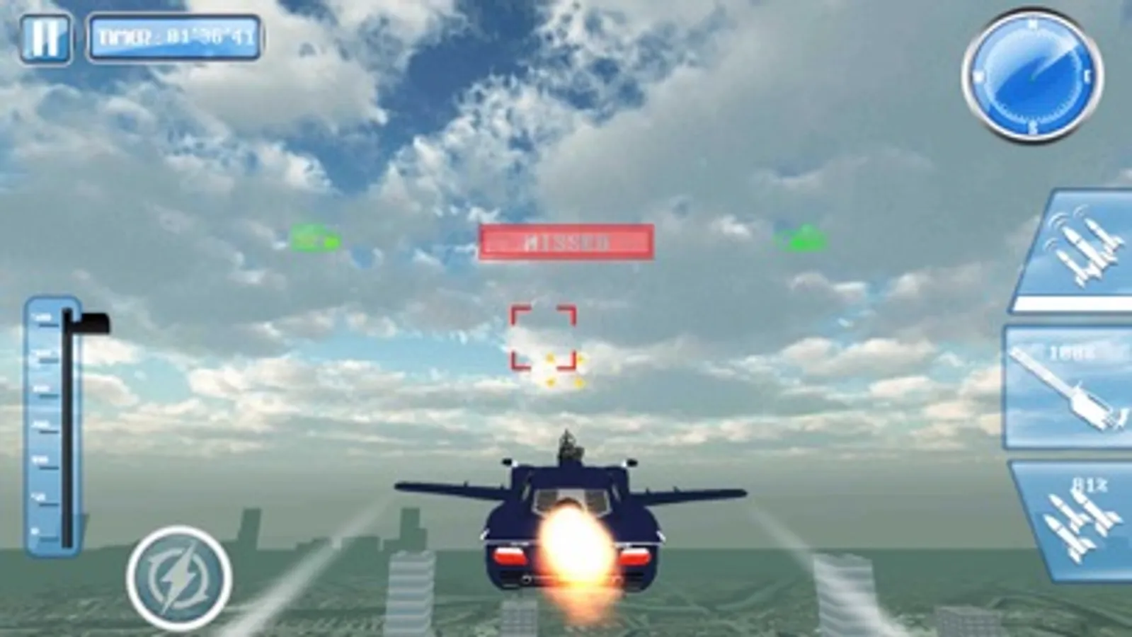 -Tap On guided missile to fire a guided missile on Enemy fighter cars.