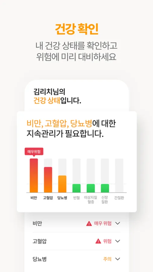 내 건강, 어떻게 변하고 있는지 궁금하다면? 최근 10년의 건강검진 결과를 연동하고 건강을 미리 챙기세요.