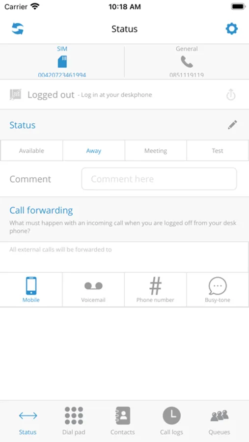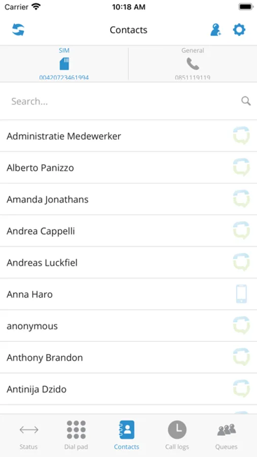 - Make outgoing calls to Voclarion contacts and view their live status.