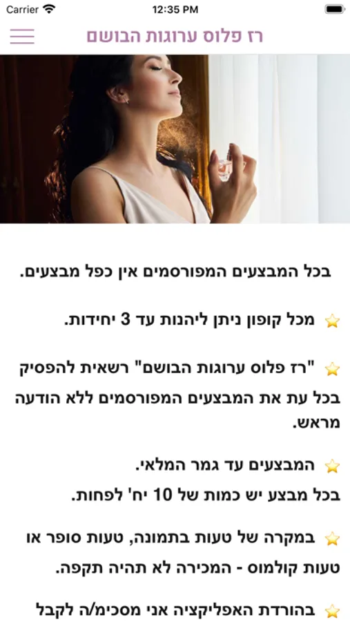 רז פלוס משווקת בשמים ומוצרי קוסמטיקה בעיקר למגזר הפרטי, בתי מרקחת ופרפומריות. החברה מאמינה במוצרים איכותיים וייחודיים, שירות מעולה ומחירים אטרקטיביים. אתם מוזמנים ליהנות ממגוון מוצרים בלעדיים, לנשים וגברים, ולהצטרף ללקוחותינו המרוצים.