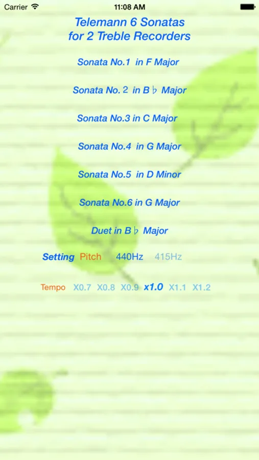 This App contain the Telemann 6 Sonatas for 2 Treble Recorders .Since it is independent of each part, by playing the other part, you can practice together.